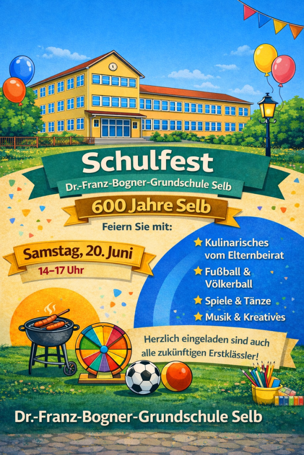 Im Mai findet unser Schulfest statt. Herzlich eingeladen sind alle Schülerinnen und Schüler, Eltern, Freunde und natürlich auch unsere zukünftigen Erstklässler!