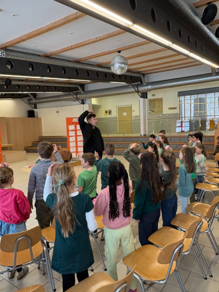 Mit großer Vorfreude versammelten sich die ersten und zweiten Klassen, um den Abenteuern des freundlichen Krokodils Krokofil zu lauschen. Mit viel Humor, Stimmeinsatz und direktem Kontakt zu seinem