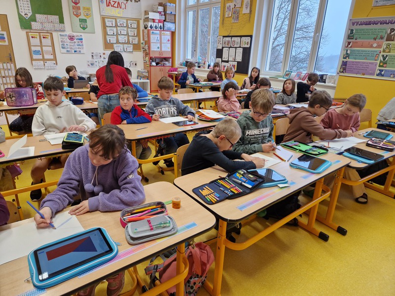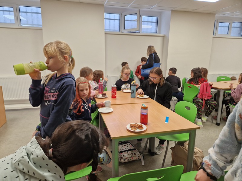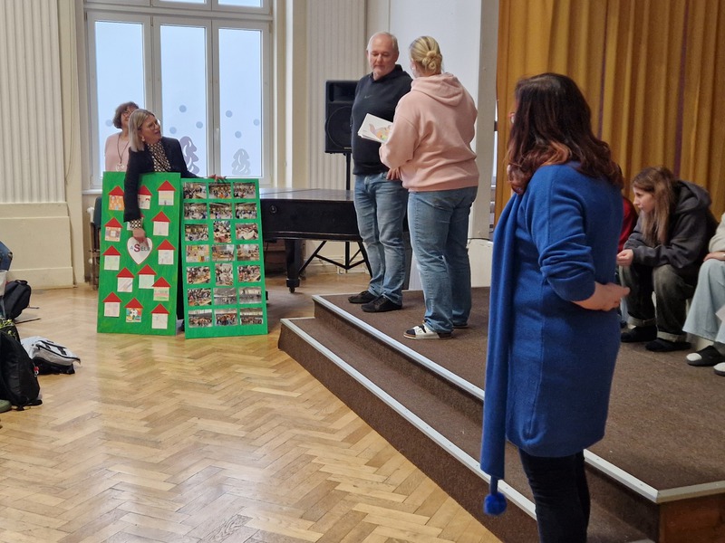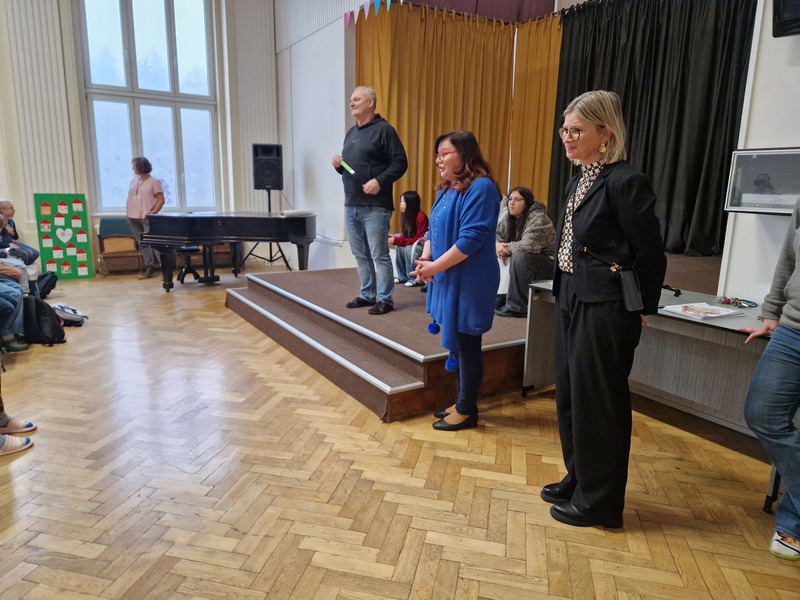 Gemeinsam mit den tschechischen Schüler*innen starteten sie den Tag mit einer Kennenlernrunde, die sofort für eine lockere und offene Atmosphäre sorgten. Anschließend ging es in verschiedene Gemeinschaftsprojekte, die von kreativen Malaktionen bis zu kleinen Arbeitsaufträgen reichten, die nur im Team gelöst werden konnten. Besonders schön zu beobachten war, wie selbstverständlich die Kinder dabei miteinander kooperierten und sich gegenseitig unterstützten – ganz unabhängig von der Herkunftssprache. Zwischendrin gab es immer wieder leckere Snacks, die Eltern vorbereitet hatten.