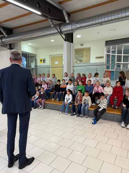 In der Aula wünschte der Rathauschef den neuen ABC-Schützen alles Gute zum Schulanfang und viel Freude am Lernen.